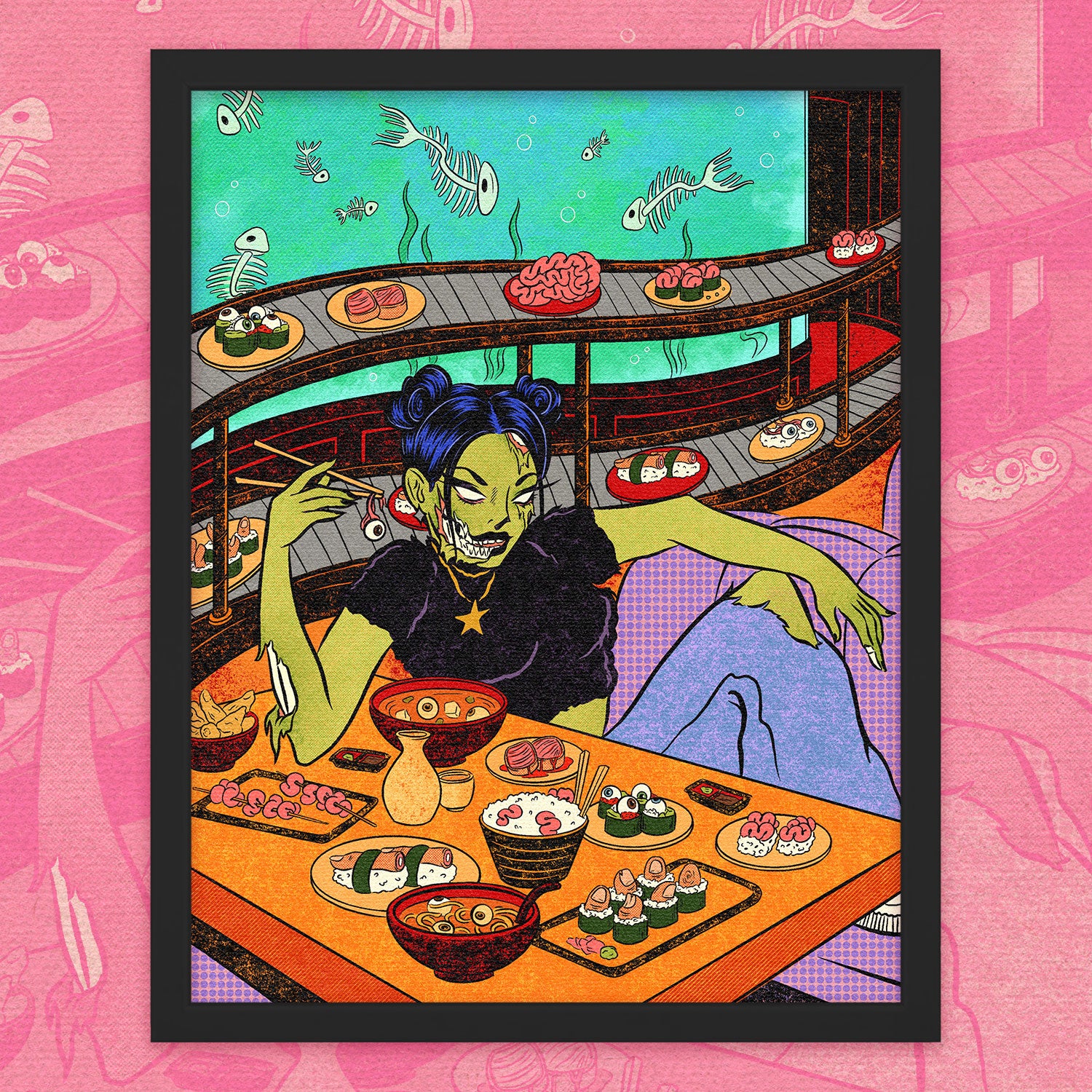 Zombie at the Sushi Restaurant Print